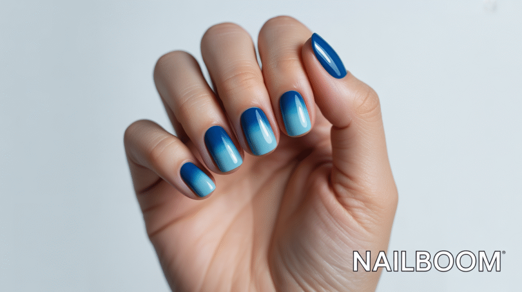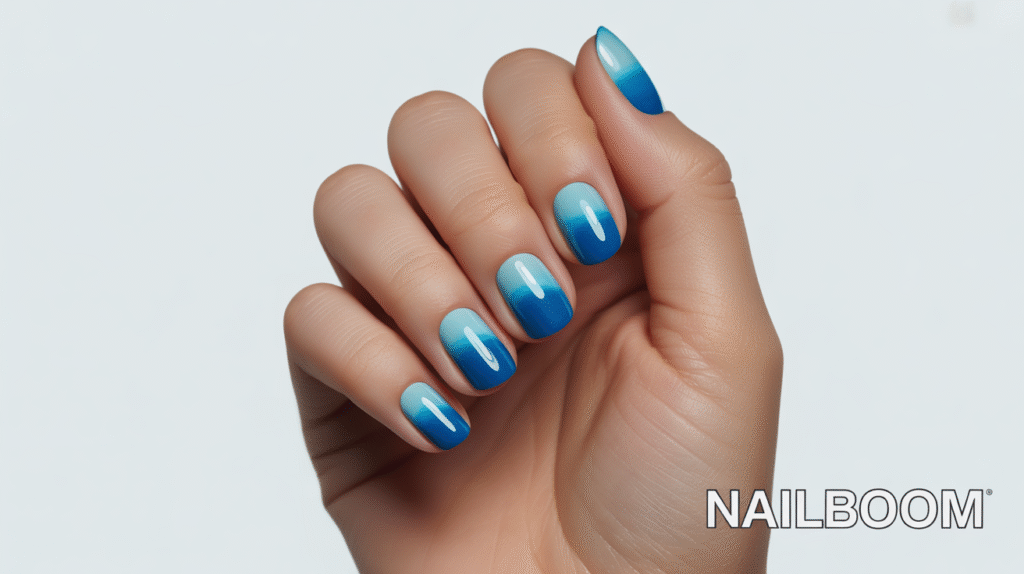 This design looks especially striking on medium to long nails, where the full spectrum of blues can shine through. Coffin, almond, or square shapes all work beautifully, depending on how dramatic you want the gradient to appear. You can keep it simple with a smooth fade or enhance the ocean theme with subtle shimmer, pearl powder, or even a wave-like accent nail.