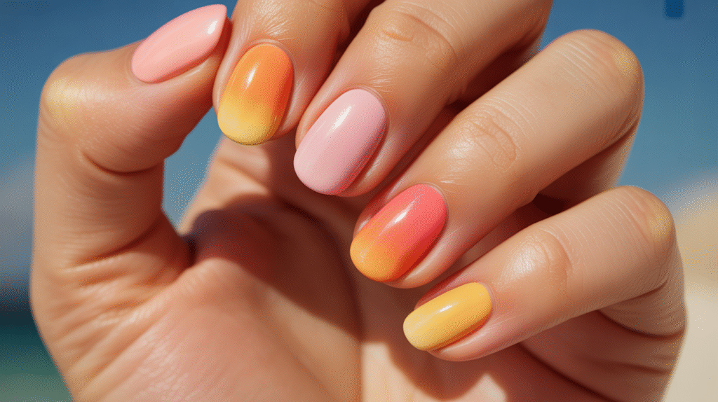 3: Sunset Ombre Nails with Warm Orange & Pink Blends