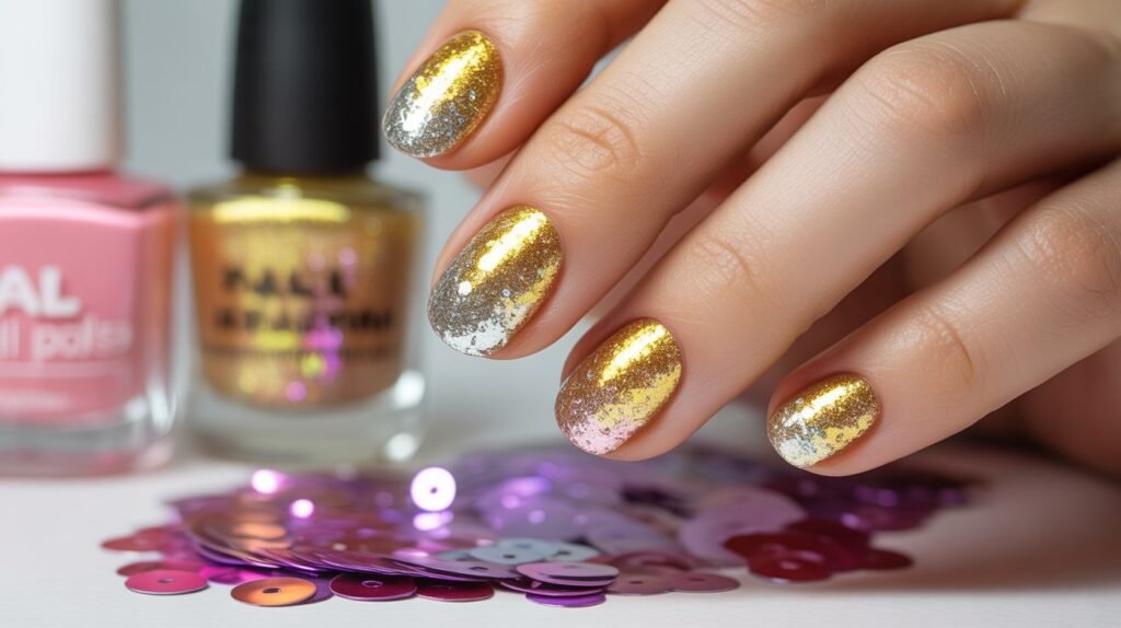 Pair silver or gold glitter with neutral base shades for a classy look, or try bold hues like royal blue or rose gold for a more daring vibe. Ombre glitter fades are especially trendy, giving your nails a luxe, gradient finish that catches the light beautifully.