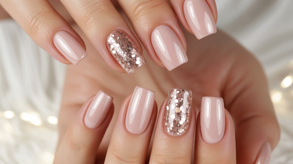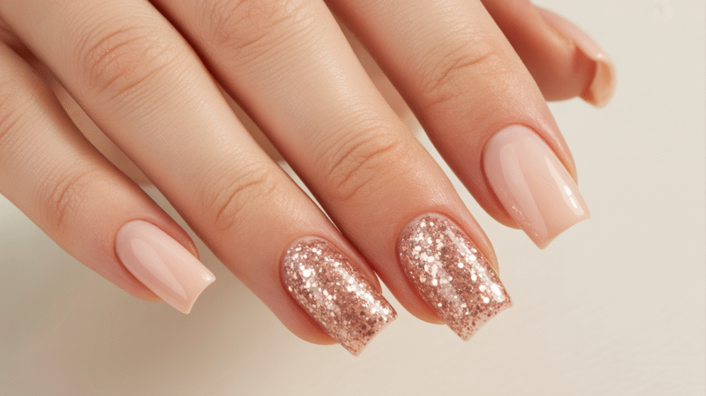 4: Glitter Accent Acrylic Nails (Beginner-Friendly Sparkle)