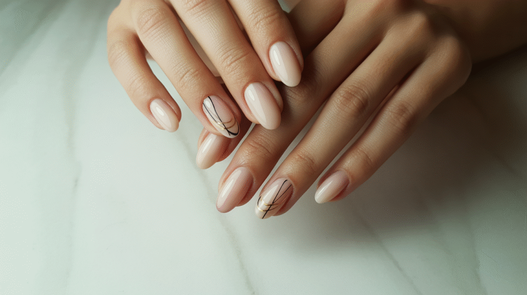 7: Nude Acrylic Nails with Minimal Line Art (Beginner-Friendly Chic Look)