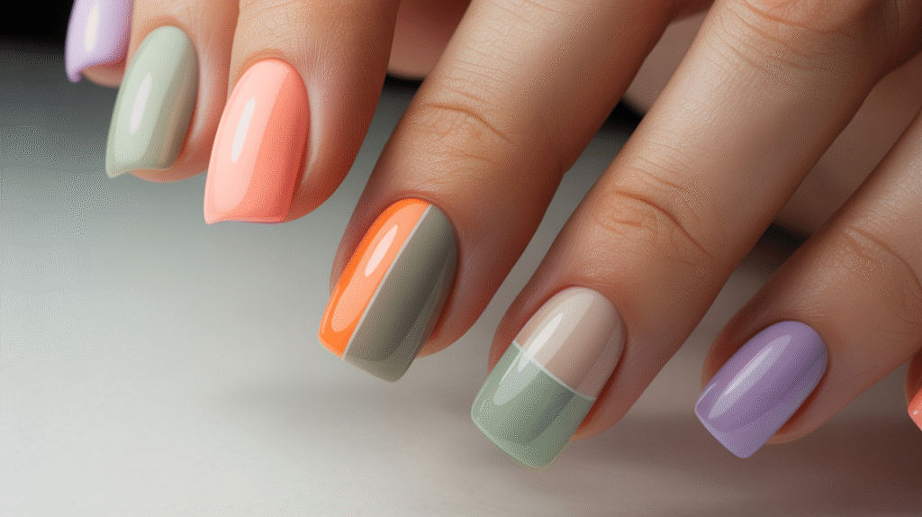 8: Simple Color-Block Acrylic Nails (Easy Modern Style for Beginners)