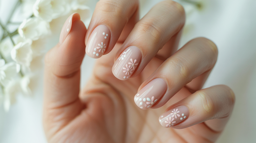 Finish with a glossy top coat to enhance the colors and seal your floral design. The result is a sweet, Pinterest-perfect look that feels soft, pretty, and polished. Beginners love this technique because it’s easy, fast, and always turns out adorable—even if the dots aren’t perfectly aligned.