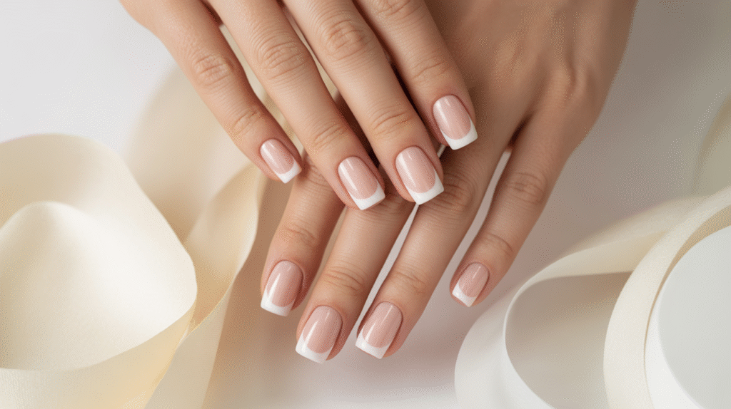 2: Simple French Tip Acrylics (Classic & Beginner-Friendly)