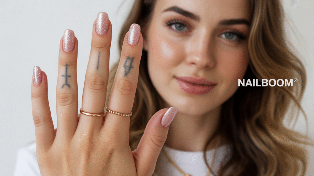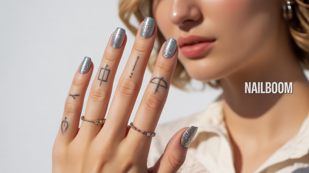 For added personality, accessorize your nails with subtle details like minimalistic finger tattoos or delicate rings. These small touches highlight your hands and make your glitter nails pop in photos, perfect for sharing on Pinterest or Instagram. The combination of ombre sparkle, personal accessories, and careful finishing creates a sophisticated yet playful look that’s perfect for any occasion.