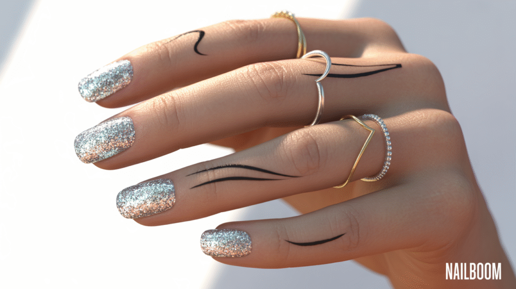 10: Glitter Nail Art with Minimalist Lines