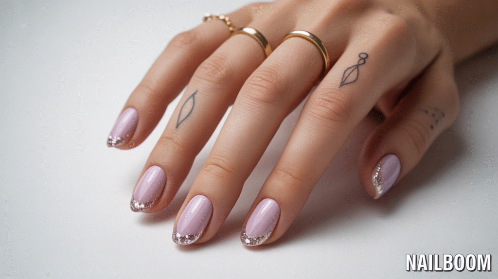 Glitter accent nails pair perfectly with accessories like delicate rings or small finger tattoos. These little details complement the glitter, giving your hands a polished, stylish look that’s perfect for photos. This design is incredibly versatile—you can switch up the glitter colors or base shades to match your mood, outfit, or season, making it a go-to option for beginners who love variety.
