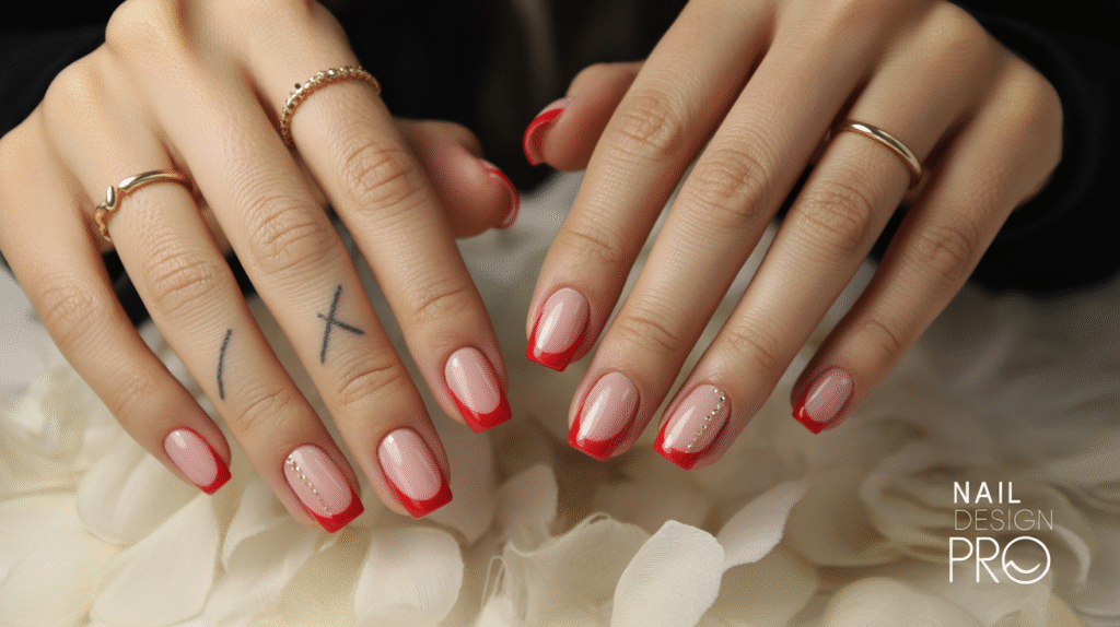 To achieve clean and precise red tips, make sure your base color is fully dry before applying the tip color. Use nail guide stickers for straight lines, or gently freehand with a thin brush for a more customized look. Applying a top coat slowly, starting from the tip to the base, helps prevent smudging and ensures the manicure lasts longer.