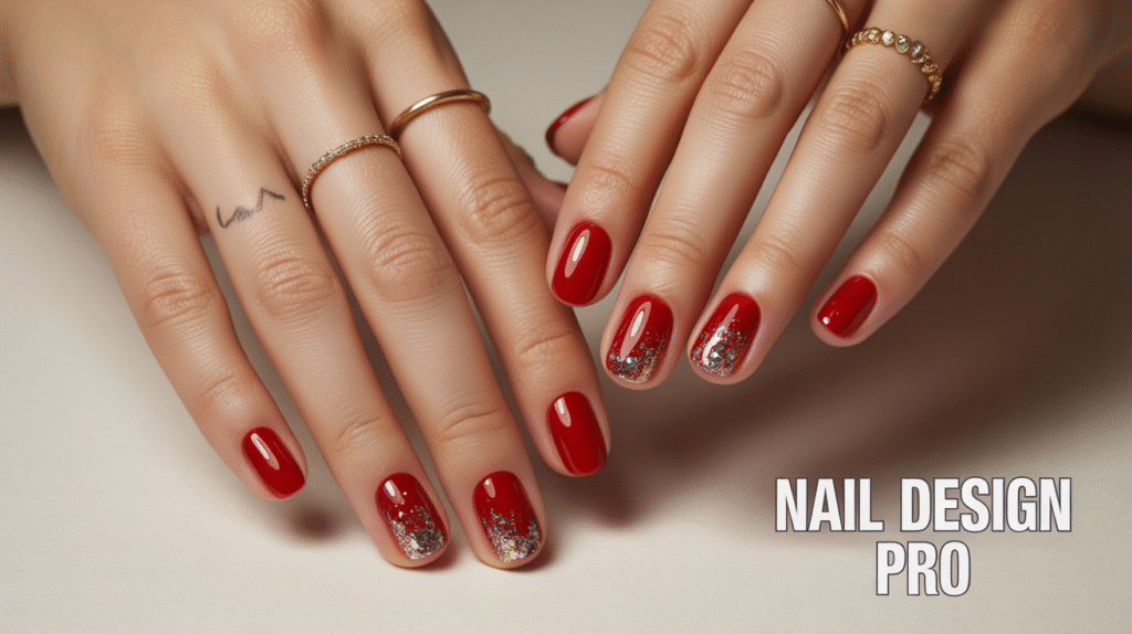When selecting glitter for accent nails, consider the size, color, and texture. Fine glitter blends seamlessly with red polish for a subtle shimmer, while chunky glitter makes a bold statement. Silver, gold, or holographic glitter pairs beautifully with red shades, enhancing the overall manicure without being too complex for beginners.