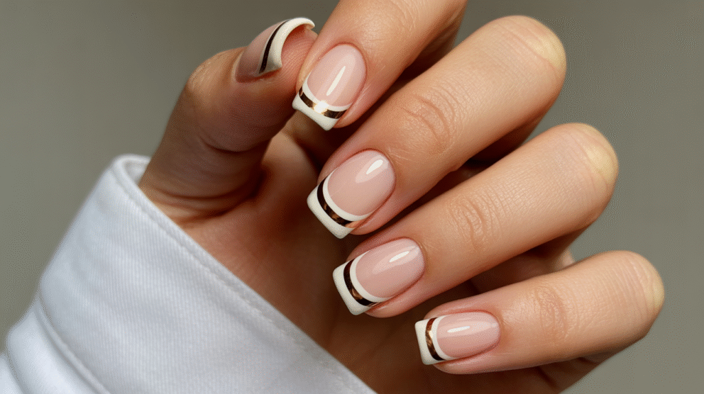 Whether your nails are short, medium, or long, this updated French manicure complements every nail shape beautifully. It’s especially flattering on almond, square, and coffin nails, giving each shape its own sense of modern elegance. If you’re looking for a versatile French design that stays true to its roots while embracing new trends, this one is the perfect starting point.