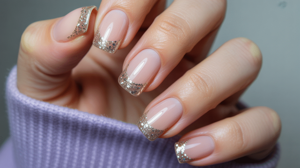 You can choose silver for a classic, icy glow, gold for a luxurious finish, or rose gold for a soft feminine sparkle. Many nail lovers also experiment with holographic glitters that shift colors depending on the light—perfect for parties, weddings, holidays, and nights out. Pairing the glitter with a sheer nude or pink base ensures the design stays elegant and balanced.
