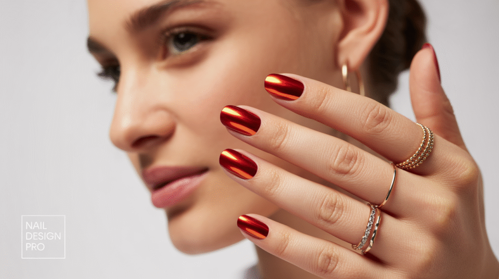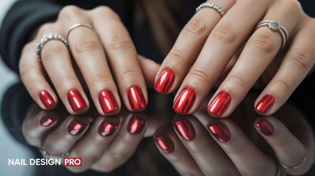 One of the best things about chrome red nails is their versatility across nail shapes. On long almond or coffin nails, the reflective finish creates a dramatic, runway-inspired look. On shorter nails, the chrome sheen adds a touch of luxury without feeling overwhelming. Paired with a simple outfit or a bold ensemble, chrome nails work beautifully with both. Their metallic sheen catches the light from every angle—perfect for Pinterest-style photos and aesthetic content.