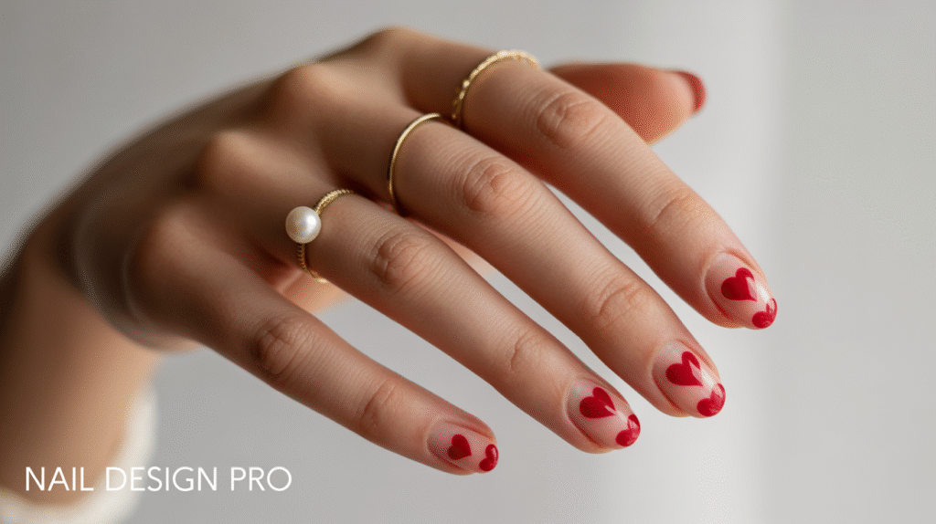 Creating red heart nail art can be as simple or as detailed as you want. For a minimalist look, paint tiny heart outlines using a fine brush. For a bolder style, use dotting tools to create filled hearts or apply heart-shaped nail stickers for quick and clean results. Seal the design with a glossy top coat for a polished finish or a matte top coat for a soft and modern feel. Red heart nails are guaranteed to add romance, charm, and Pinterest-ready cuteness to your manicure.
