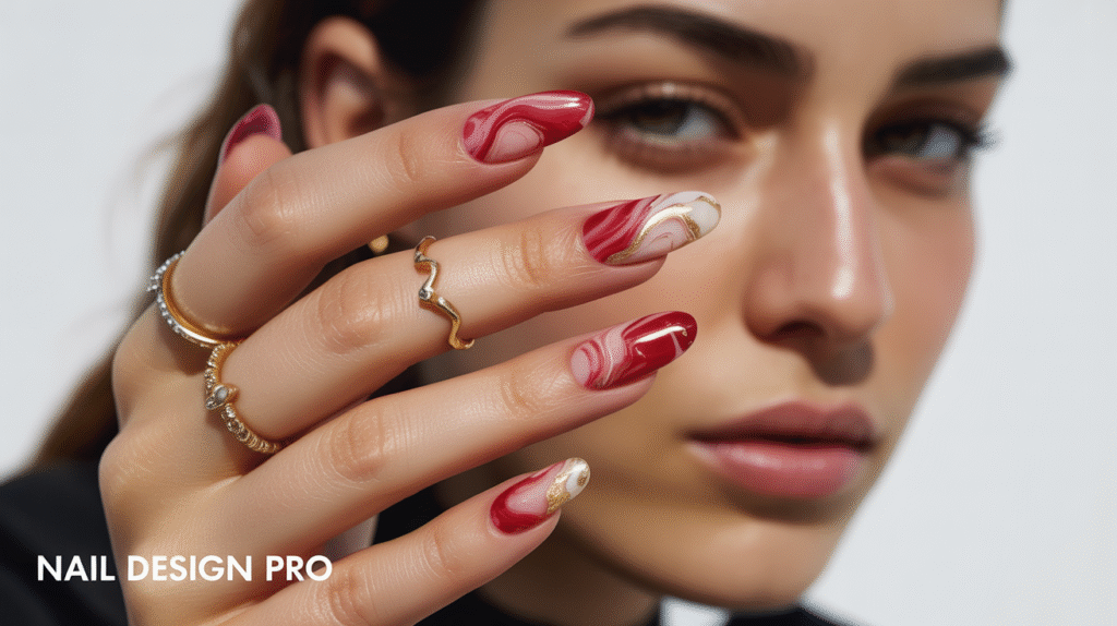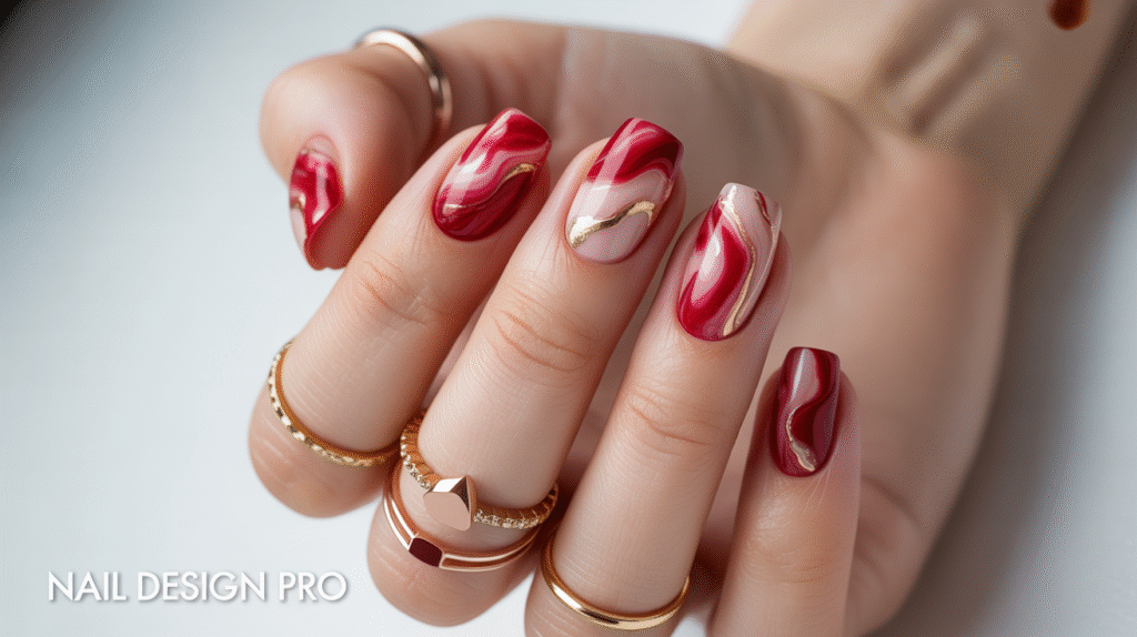 9: Red Marble Nails