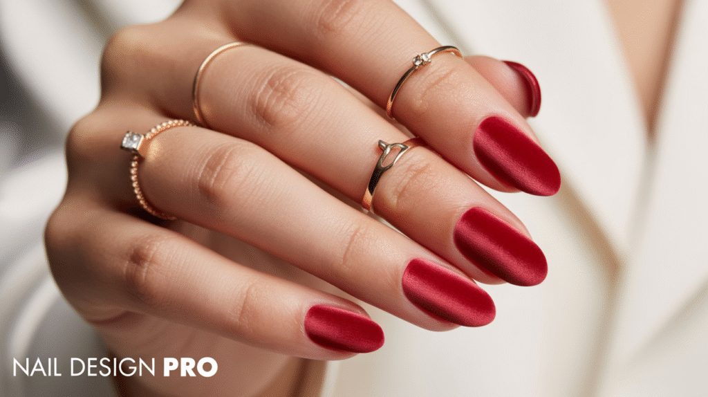 What makes red velvet nails especially stunning is how they catch the light. The subtle shine and texture give your nails a dimensional, almost 3D effect that looks mesmerizing in photos and videos. This makes them a favorite for Pinterest aesthetics and beauty influencers. Red velvet nails look gorgeous on every nail shape—almond, square, stiletto, or coffin—and work beautifully whether you choose a dark wine red or a brighter ruby shade. They pair well with statement rings, cozy sweaters, and winter fashion.