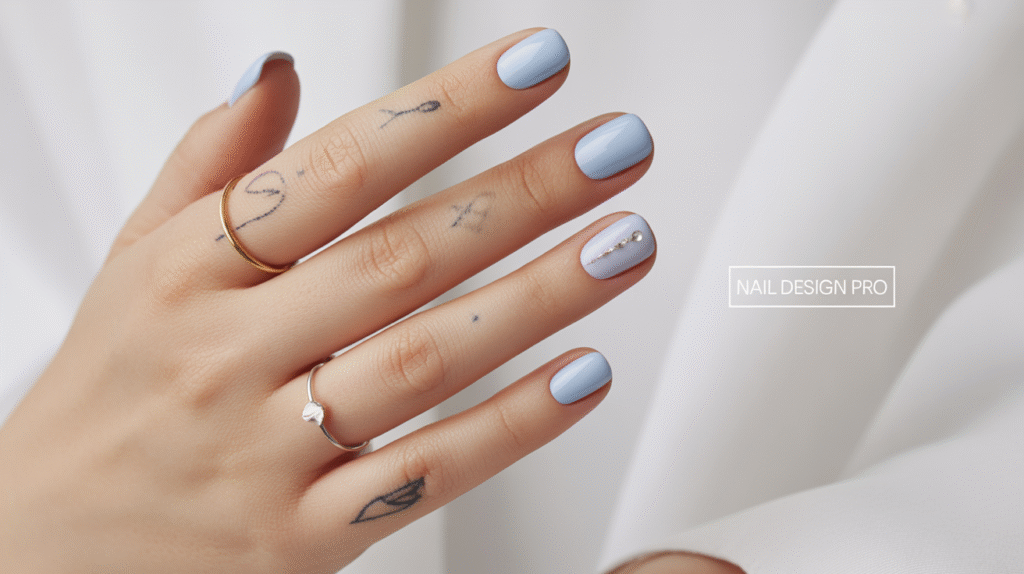 For a subtle upgrade, add a delicate accent on one nail—such as a micro heart, thin stripe, or tiny gemstone—while keeping the rest solid baby blue. This keeps the manicure minimal yet visually interesting, perfect for daily wear or soft aesthetic looks.