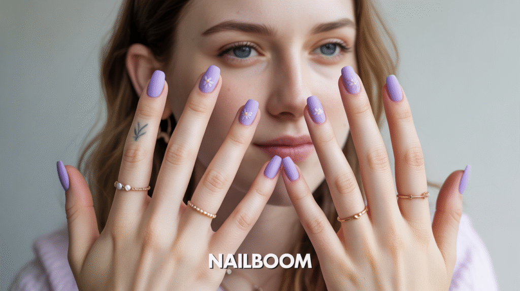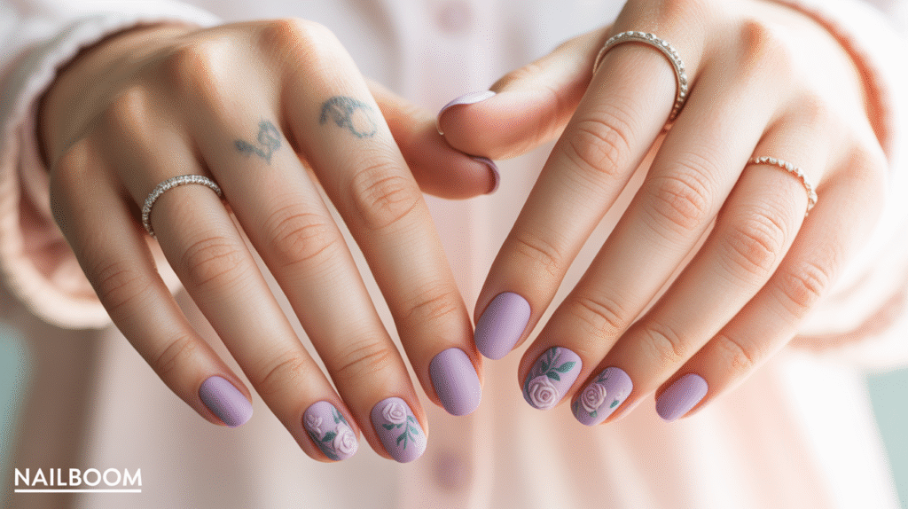 8: Matte Lavender Nails With Subtle Floral Accents