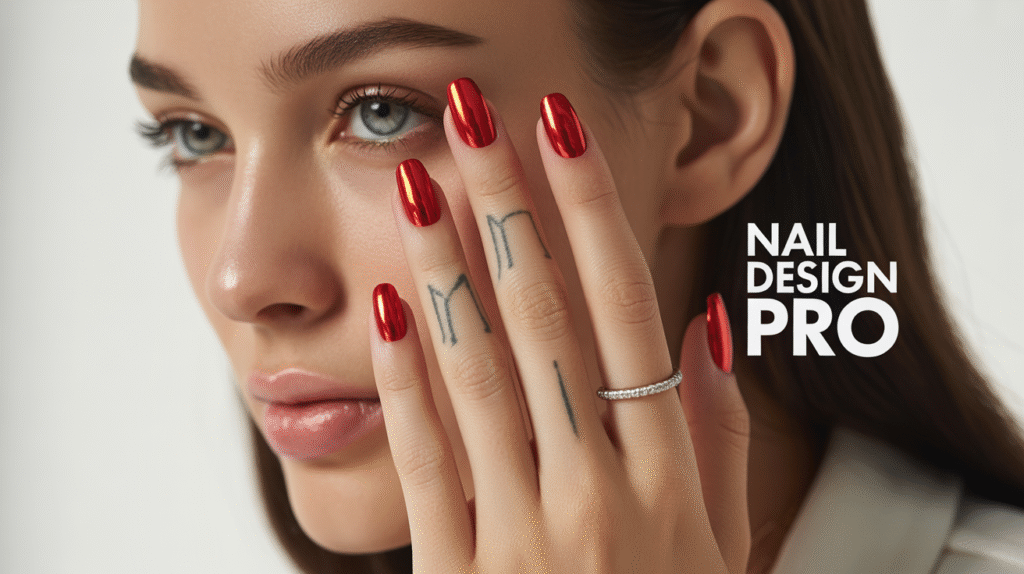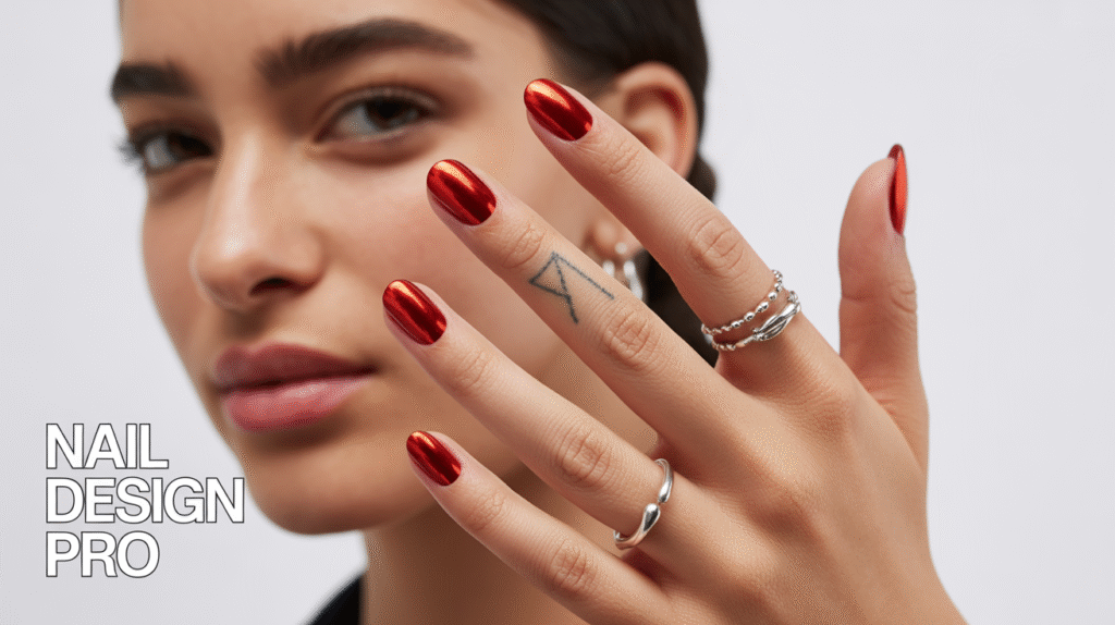 3: Red Chrome Nails with a Metallic Mirror Shine