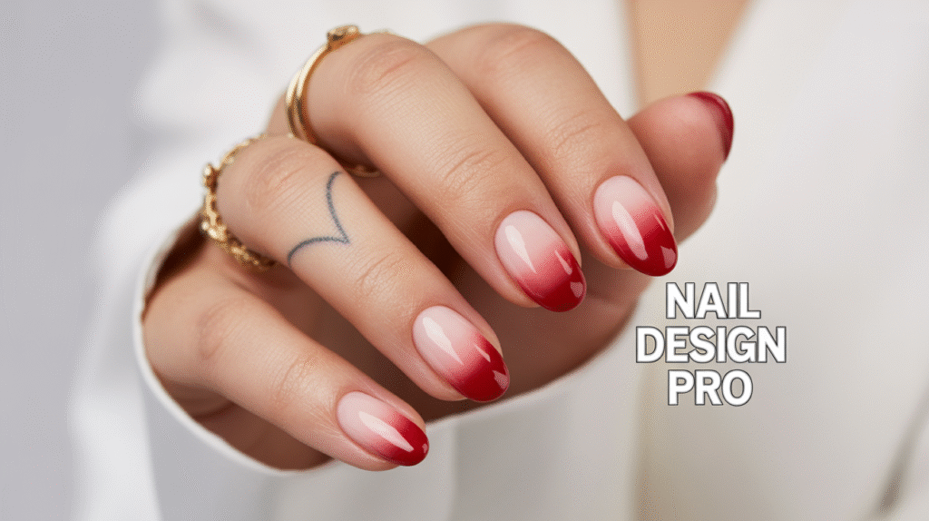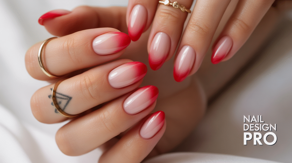 5: Red Ombre Nails with Soft Blush Gradient for a Romantic Glow