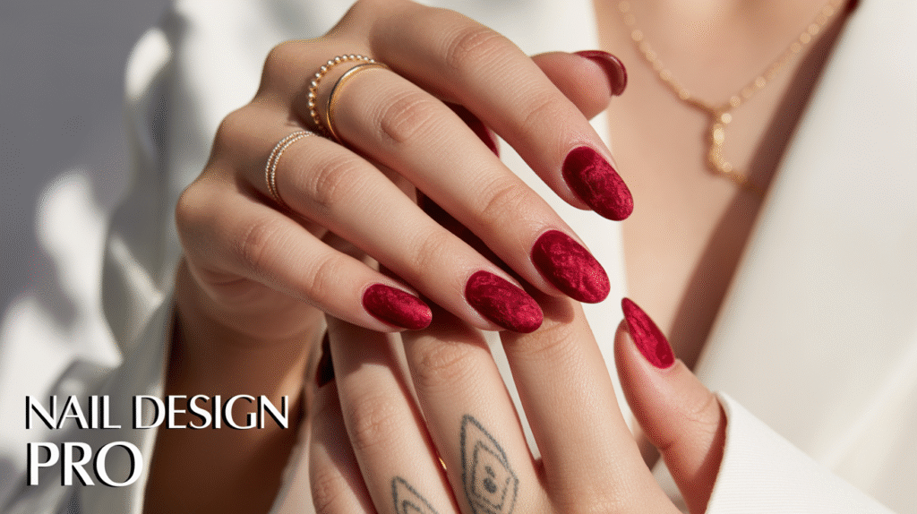 9: Red Velvet Nails for a Soft, Plush Luxe Texture